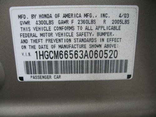 2001 honda accord, no reserve