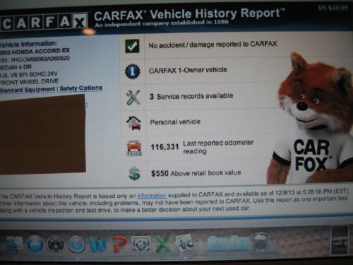 2003 Accord Ex - L V6 4 Door Clean Carfax 1 Owner No Reserve on 2040-cars