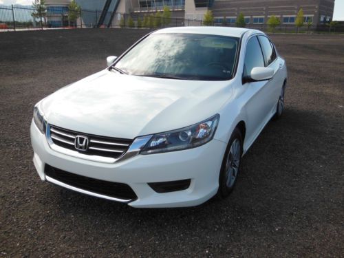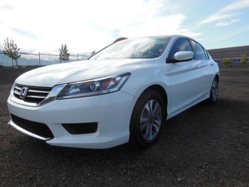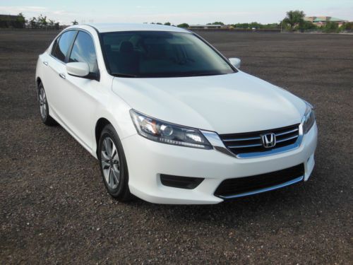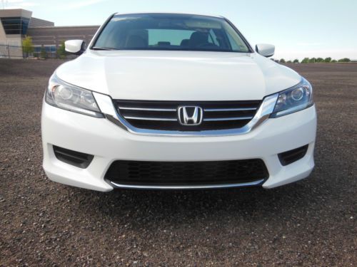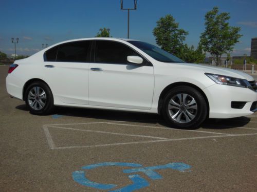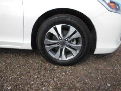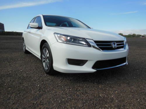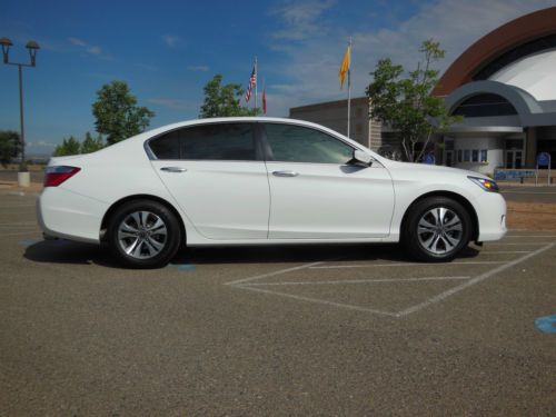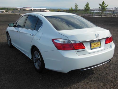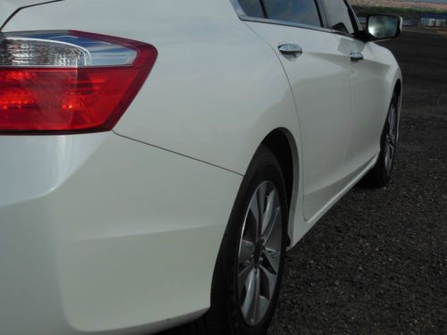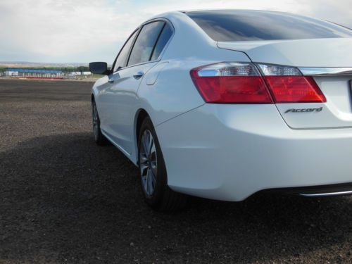 2014 Honda Accord LX 4 door sedan, Orchid Pearl White with Ivory interior. Purchase new 10/22/2013 from Premier Motorcars of Santa Fe. Also had XPEL Ultimate Deluxe Paint Protection Film applied before the car had 350 miles on it. Along with having the windows tinted Silhouette 35% on front and 20% on sides and rear. Cost for both was $845. Also have new front License plate bracket and New OEM Honda wheel well splash guards, neither have been installed. Car also has OEM Honda trunk protector installed. Car has just over 19,655 miles, almost all of which is highway miles. Oil and filter were changed at 3,862 miles, old habit. Then changed again at 14, 052 when it showed that it needed to be done. Tires and wheels were also rotated at that time. Car was also just professionally detailed and looks like new. All receipts for above are included along with all factory owners manuals and service books, two sets of keys and fobs along with the service set of keys. Car has not dents, dings or otherwise, I am going over it right now to see if I can find any marks, scratches, etc on the car no matter how small. Car has the remainder of the factory 3 yr/36,000 mile warranty. Car will be delivered with full tank of gas, freshly changed oil and filter ready to go to its new home. Car is located in Albuquerque, NM and can be picked up there. If you fly in I will pick you up at the Sunport International Airport in Albuquerque, NM and deliver the car ready to leave town. I prefer that the money is Bank wired from your bank to mine. Please call 505-249-9301 with ANY questions, car is ready to go now, and my new one is here, so ready to sell. MSRP new was $ 23,545. plus above add-ons. NO DEALERS, AGENTS or ANYONE ELSE TRYING TO BROKER THE CAR FOR ME.