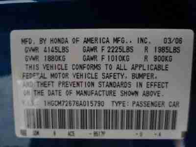 Accord ex sedan 4d blue automatic 5-spd w/overdrive fwd abs (4-wheel) moon roof