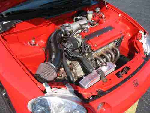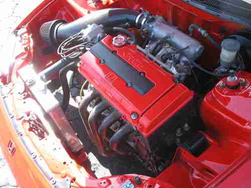 93 Honda Del Sol S model. Very heavily modified, JDM B18C type R with gsr trans, triY header with 2.5" exhaust with magnaflow muffler, Password JDM carbonfiber intake, P28 ECU chipped and tuned by phearable.net, 7.5 lb Fidanza flywheel, stage 3 6 puck clutch, B&M race series short throw shifter, Hasport mounts, 3 core radiator, Skunk 2 pro c coilovers (currently lowered 2-3"), energy suspension master bushing kit, blox spherical trailing arm bearings, red aluminum rear lower control arms, Del Sol Si front and rear sway bars, civic ex front knuckles with 10.3" front rotors, Integra front calipers, rear disc conversion, all rotors Brembo cross drilled/ slotted, 15/16 master cylinder, stainless braided flex lines for all brakes and clutch, gloss black 15" Konig feather wheels with Nitto Neo Gen 205/50/15 tires, entirely shaved and tucked engine bay, smoked headlights and driving lights, 6000k hid headlights, white led lighting for the gauges,Kinetic AGM battery, Viper alarm with drivers keyless entry, mild weight reduction (weighed in at just over 2200lbs with gas in the tank) tons of new parts. Has over $7000 in parts alone not counting labor and all of the custom work in the bay. Engine and trans have 40-60k miles on them and brakes, coilovers, bushings, clutch and flywheel all have less than 10k miles on them. Always run ams synthetic with K&N filter on the engine. Garage kept, not driven in winter, virtually rust free, very clean inside and out, brand new paint, interior center console, ash tray and door handles all in good condition and not broken, no tears in the seats, roof goes on and off very easily and stows away in the trunk rack well. professionally built, maintained, and detailed. Runs great, pulls hard in vtec, shifts great, handles and stops like a dream, very fast Honda and still pulls off being a bit of a sleeper, exhaust sounds great (nice and deep not obnoxious or over loud and sounds amazing in vtec). Car needs nothing, ready to go for summer. I have a baby on the way and need to sell fast so I'm starting this auction off low to sell it now, my loss is your gain. Not trying to hide anything from anyone, what you see is what you get, pictures all taken today. Very rare to find a Del Sol in this good of condition, not perfect but pretty close to it. No reserve, just bid and buy. Any questions or for more pics just ask. Serious bidders only.