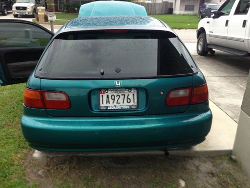 Your bidding on a one owner all original and stock 1995 Civic CX Hatch. The car has original owners manual and 95% of all service records. It has an after market stereo-cd player, and rear speaker grills have been drilled for sound to come through. This car has a clean carfax! All maintenance has been performed. Fluids have been changed on a regular basis, and AC blows ice cold. All devices work as they should. The car drives and shifts smooth with new exhaust, tires, brakes, clutch pressure plate, and throw out bearing all OEM. Please email if you have any further questions. The miles are correct as well. This is a chance to own a hard to find EG body Civic completely stock. These are getting harder to find in this condition.