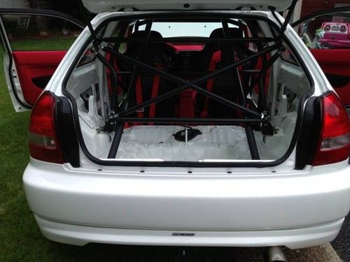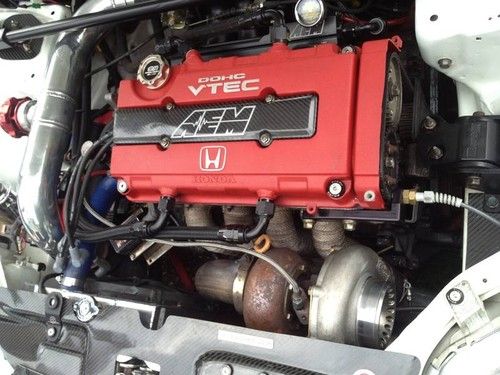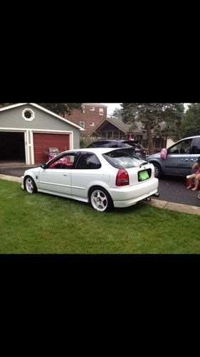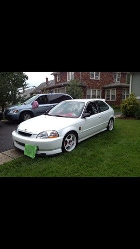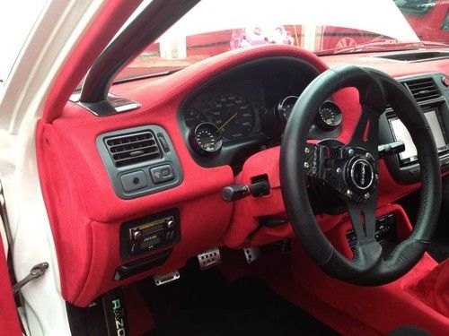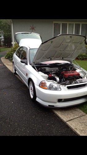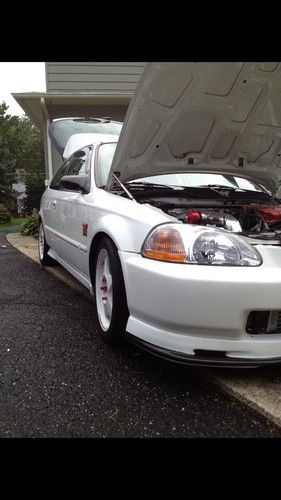 1996 JDM honda civic hatchback. Engine type R block fully build with blue print arias racing pistons and rings. Darton slives custom made springs and valves, port and polished head, AEM fuel rails,1500cc injectors,racing catach can T I cam trigger..custom made racing header with 3 inch pipe precision turbo front mont inter cooler on a skunk 2 manifold racing body.. Type R transmission with fixed gears exedy stage 3 clutch and racing flywheel.racing shafts and axels with lugs and hubs from drive shaft comp. ELECTRONICS,MSD wires and distributer,AEMcomputer,fireball MSD coil and racing sparkplugs. D2 racing coil overs,function 7 control arms,beak racing brace,black work camper kit,meugen front strut bar and x bar for rear super rare regamasters evo wheels 16 inch. BRAKES,JDM cross drilled and slotted brake rotors and JDM calipers, steal bradded brake lines and carbon ceramic brake pads. INTERIOR, 10 point roll cage,JDM cluster,JDM head unit, power windows (RAIR) power locks pioneer Bluetooth navigation top of the line stereo and amp, rock ferfosgate speakers.. Complete JDM red alcantera suede interior, quick release stealing wheel,red racing harness, full carbon fiber seats,, lots of carbon fiber threw out... EXTERIOR, spoon sports rear mirrors, ,rear hatch.. Spoiler meugen, front and rear lip type R.. All new lights and JDM red side markers.. JDM red emblems,every nut and screw are brand new from dealer!! Took over 3 yrs to build from scratch.. DRIVEN ONLY 3 times since all work was done,always garaged... Over 70k invested!! Everything oem.. Right side door needs work after my wife took a stick to it, will see in pictures everything else spotless!!!!!!! NO RESERVE LET MY LOST BE YOUR GAIN..