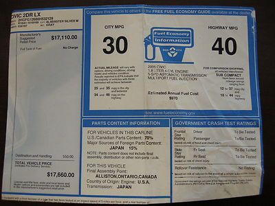 2006 Civic Lx Coupe Auto A/c One Florida Owner Great Condition Great On Gas on 2040-cars