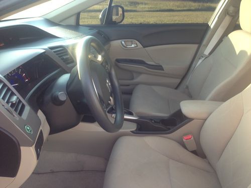 Up For Auction is a Honda Civic 1 owner Lx in Urban Titanium with 15k on it. It has a 1.8 Liter 4 cyl, Beige cloth Interior. Average 40mpg on the highway and a little less in the city. This car is in new condition and has been well taken care of. Has the reminder of the factory warranty. It is a great car and a very good gas saver the only reason we are selling it is because we need a Suv for more room. This is pretty much a brand new car and it looks as good as the day we drove it off the lot and is kept in the Garage when not being driven, car has not been Smoked in and Pet free. If you have any Questions feel free to Email me and I will gladly answer them.