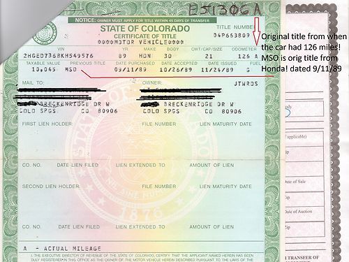 - lived in a dry climate, with little to no rust for most of its life (yes, I know.. west coast cars are the best, but this one came from Colorado Springs, and evidently was kept in the garage most of the time when they had snow out there, because there is only 1 small rust area, comparatively minor compared to most of the east coast Civics
