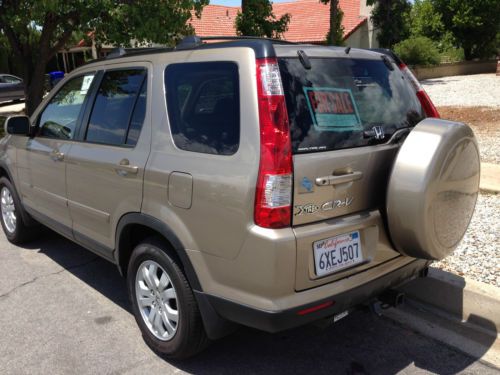 I am selling my 2005 Honda CR-V Special Edition 4dr SUV. All Wheel Drive (2.4L 4cyl) with Sahara Sand Metallic Exterior and a tan interior. It has been garaged for the past 10 year, has Leather Seats, Front Heated Seats, Power Glass Moonroof, Power Steering, Tilt Wheel, Leather Steering Wheel Trim, Cruise Control, AM/FM/CD Audio System, Power Windows, Power Door Locks, Power Exterior Mirrors, 16 Inch Alloy Wheels, New Tires, U-Haul Tow Pkg, Roof Rack, Complete Service Records, and 120,000 miles. It is very clean and fun to drive.