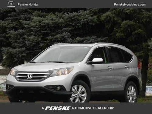 This 2014 Honda CR-V 5dr AWD 5dr EX-L SUV features a UNSPECIFIED 4cyl Gasoline engine. It is equipped with a 5 Speed Automatic transmission. The vehicle is ALABASTER SLV with a GRY LEATHER-MED SEAT Leather interior. It is offered with a full factory warranty. - Sunroof, Heated Leather Seats, CD Player, Bluetooth, All Wheel Drive, Alloy Wheels, Overhead Airbag, iPod/MP3 Input, Satellite Radio, Back-Up Camera, Top Dollar for all trade-ins! Have your car appraised today! EX-L trim. CLICK NOW!KEY FEATURES INCLUDELeather Seats, Sunroof, All Wheel Drive, Heated Driver Seat, Back-Up Camera, Satellite Radio, iPod/MP3 Input, Bluetooth, CD Player, Aluminum Wheels, Heated Seats, Heated Leather Seats. MP3 Player, Dual Zone A/C, Keyless Entry, Privacy Glass, Steering Wheel Controls. Top Dollar for all trade-ins! Have your car appraised today! VISIT US TODAYYou can expect this Honda dealership to continue providing the exceptional, award-winning level of service our community anticipates and deserves. Penske Promise - If you are not satisfied with your Penske purchase you can return it to Penske Honda within 3 business days from the date. Please call 877-261-3999. * Based on 2014 EPA mileage estimates. Use for comparison purposes only. Do not compare to models before 2008. Your actual mileage will vary depending on how you drive and maintain your vehicle. Please confirm the accuracy of the included equipment by calling us prior to purchase. - Leather Interior Surface - Contact Internet Sales at 877-261-3999 or zmcvicker@penskeautomotive.com for more information. - Print this page and bring it in and save an additional $200. You must present to the Internet Department to receive the additional $200. Prices do not include destination charges. Cannot be combined with any other offer. You must present to the Internet Department to receive the additional $200.