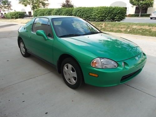 WOW....BRAND NEW HONDA DEL SOL .... SI 2 EDERLY OWNERS.......GARAGED AND PAMPERED SINCE NEW......UNREAL ONLY ONE IN COUNTRY...24,000 ORGINAL MILES....NEW COPPER TIRES.....PAINT AS NEW...INTEIORR AS NEW....NO WARE AT ALL UNDERNEATH IS NEW.....RUNS AND DRIVES NEW....RARE FACTORY HONDA TRUNK MOUNTED 6 CD PLAYER....EVERYTHINGS WORKS PERFECT ALL ORGINAL MANUALS............RARE HONDA GREEN.....5-SPEED.... CALL AND I CAN GIVE FULL DETAILS......443-764-5393.......CAR IS ALL ORGINAL....I HAVE THE ORGINAL AIR INTAKE ASSEMBLY THE AFTERMARKET WAS PUT ON AT THE FIRST WEEK OF THE CAR OFF THE SHOW ROOM AND THE ORGINAL BLACK SHIFTER BOOT AND PARKING BOOT IS ALSO WITH CAR....THANKS