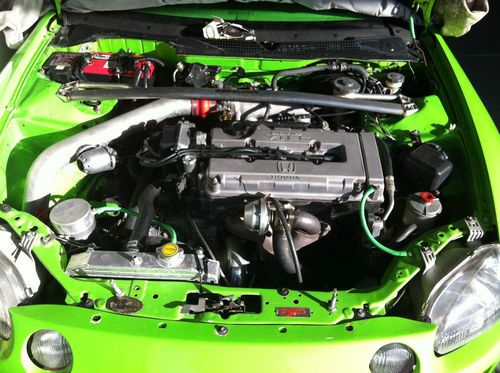 Well-cared for trade/show car, Always garaged1995 DOHC VTEC 1.6L FACTORY EQUIPPEDSINCE SWAPPED TO JDM B18C5 TYPE-R SHORT BLOCK USDM B16A HEAD THAT CAME WITH CAR ORIGINALLY AKA “POOR MANS TYPE -R “ BLOCKED HAS BEEN RE- SLEEVE WITH DARTON SLEEVES CROWER H-BEAM RODS JE-PISTONS 10:1 RATIO HEAD IS B16A USDM AGAIN THE ORIGINAL HEAD IS FROM MY ORIGINAL ENGINE(WHICH I STILL HAVE) THE HEAD HAS TYPE-R VALVE SPRINGS AND OEM US-SPEC 1995 GS-R CAMS THE THROTTLE BODY(B16), HEAD, AND INTAKE MANIFOLD(TYPE-R) HAVE BEEN PORTED AND POLISHED.FULL ALUMINUMINTAKE PIPING WITH REAL HKS BLOW-OFF VALVE.TIAL WASTEGATE ,’’REV-HARD’’ EXHAUST MANIFOLD LOG-STYLE CAST IRON FULL 3’’ CATLESS EXHAUST SYSTEM WITH WASTEGATE DUMPTUBE RECIRCULATED IN EXHAUST SYSTEM RC 310 INJECTORS, VACUUM FED FUEL PRESSURE REGULATOR, BOSCH IN-TANK FUEL PUMP-THIS FUELING SYSTEM WAS “STATE OF THE ART” BACK THEN, THIS SETUP HAS BEEN IN THE CAR SINCE 2001. JUST USE A HONDATA TO TUNE AND THIS BLOCK CAN WITHSTAND 500 HP OR EVEN MORE. This engine has less than 1500 miles since being reassembled.