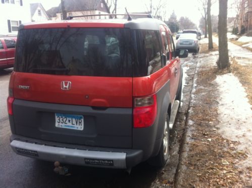 2003 Honda Element All Wheel Drive. This car runs but is in need of front struts and one of the four cylinders in the engine is beginning to fail. I just had a complete detailed vehicle inspection done at Richfield Bloomington Honda and can forward through email by request. teaguealexy@hotmail.com The vehicle is parked on the 3300 block of Longfellow Ave in the Powderhorn area of Minneapolis. I will be able to show the car on Sunday, Monday and Tuesday. Call for appointment Teague 218.390.5079 I purchased the car from my step mom (who bought it new) at 96,000 miles in 2006 and put all the miles on traveling in a two piece band around the country. In addition to what is on Honda's vehicle inspection - the radio doesn't work right (speakers are fine) and the glove box latch is broken. It has truly been an amazing car but we have upgraded our touring operation to a Honda Odyssey.