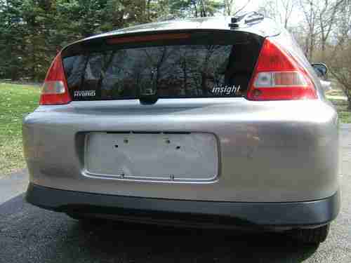 2000 Honda Insight Hybrid for sale with 168,454 miles. 2 door hatchback, Silver with grey/black interior, 3 cylinder 1.0 liter engine, 5 speed, A/C, PS, PB, PW, PDL, intermittent wipers, keyless entry, rear defrost, Alpine AM/FM/CD. Car was owned by the same family since new until earlier this year. It was bought new in Louisiana and then went to family in Wisconsin. IMA battery replaced @ 135,057 miles by Honda (have receipt), catalytic converter and O2 sensor replaced 5/5/2011, ECU replaced under warranty last week along with driver’s seat belt assembly, new air filter, oil and oil filter change with correct 0-20W synthetic oil, new Honda clutch master cylinder and fluid flushed, transmission fluid changed with correct Honda fluid, new rear motor mount, new EGR valve and EGR plate cleaned, new cabin air filter, new windshield wipers, 2 new ground cables, 4 new dash reset buttons, seat covers taken off and cleaned, new windshield installed Monday (4/8), tires have 4000 miles on them. Car also has an air bag disable switch ($153) installed by the previous owner to allow a car seat in the passenger seat. Car runs great and the IMA battery functions as it should, charging and assisting when needed. Regen works like it should when braking. Transmission does not grind downshifting like some of the 5 speeds do. Everything works on the car as it should. Carpet on the driver’s side has the usual wear on the dead pedal and under the floor mat. Body has some scratches from 13 years of use and the front right fender is cracked (see picture). I have some of the previous owners repair invoices and the original window sticker but no owner’s manual. The owner’s manual can be downloaded for free on the internet. Lifetime MPG is 60.8 and just returned from a 320 mile trip and got 65 MPG. Goes in and out of lean burn as it should. VIN tags on the body panels as they should be. No warning lights on the dash or codes. If you know anything about these cars you know they are the king of MPG. Only reason for selling is we bought a 2002 Insight. I have the clear title in my hand ready to go. The car is available for inspection anytime before the auction ends. $5900. Additional pictures on request. No warranty as this is a used car. I reserve the right to end the auction early since I have it listed locally. If you have zero feedback you need to contact me before bidding. PayPal for deposit only. Balance due within 3 days of auction close or balance in cash on pickup. I can not ship your car.