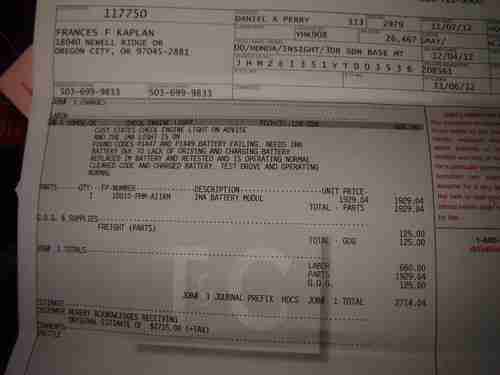 2001 honda insight base hatchback 3-door 1.0l grid charger new ima battery(US $8,750.00)