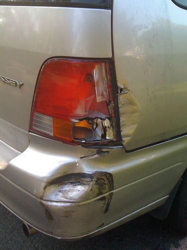 Minor body damage to the right rear corner in addition to other normal body 'wear' (see pic below. Tail light was replaced, bumper mostly pulled out, but body damage remains.)