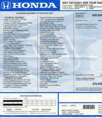 Scan copy of original vehicle manufacturer window sticker detailing key features is provided in vehicle pictures.