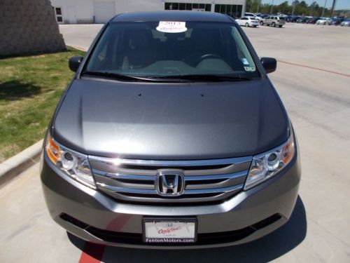 Thank you for your interest in one of Honda of Longview's online offerings. Please continue for more information regarding this 2013 Honda Odyssey LX with 35,499 miles. When your newly purchased Honda from Honda of Longview comes with the CARFAX BuyBack Guarantee, you know you're buying smart. Surprising quality accompanied by a high level of performance...this Polished Metal Metallic on Gray Odyssey LX could end up being the perfect match for you. There's no need to look any further. Honda of Longview has the perfect match for you. This Odyssey's Polished Metal Metallic on Gray color combination will make heads turn. More information about the 2013 Honda Odyssey: The 2013 Odyssey stands out from the pack by offering an especially thoughtful, versatile interior layout and stylish design. The Odyssey's new 3-mode second-row seat is also a standout in its class, able to fold, widen for passenger comfort, or become narrower for easier access to the third row. And the Odyssey remains one of the sportiest-driving minivans available-- especially with respect to handling. Feature-wise, the Odyssey is the first minivan to offer an all-digital entertainment system with a high-resolution HDMI input to keep it compatible with modern electronics. For safety, Honda also claims to offer the most LATCH child seat positions of any vehicle--a total of five to easily allow four child seats of any design. Strengths of this model include Bold styling details, innovative cargo storage, living-room-on-wheels comfort and versatility, smooth, refined ride, and responsive handling Thank you for visiting a listing of Fenton Honda of Longview, home of the FREE OIL CHANGES FOR LIFE! Every pre-owned vehicle passes 175 point inspection and has a CarFax Buyback Guarantee! Please call and ask for Nars Buenaventura to receive EXCLUSIVE Internet pricing!!