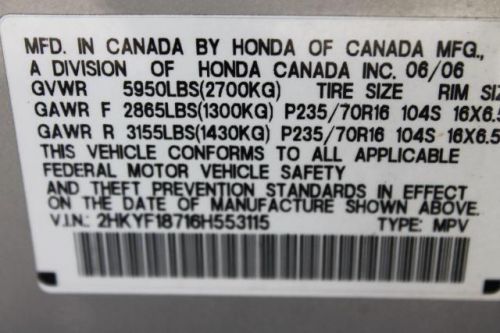 VIN (Vehicle Identification Number): 2HKYF18716H553115