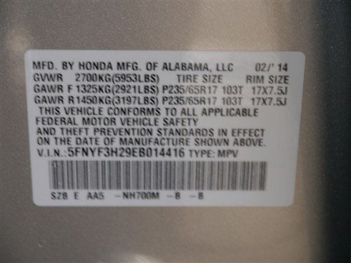 VIN (Vehicle Identification Number): 5FNYF3H29EB014416