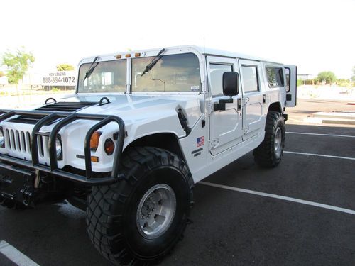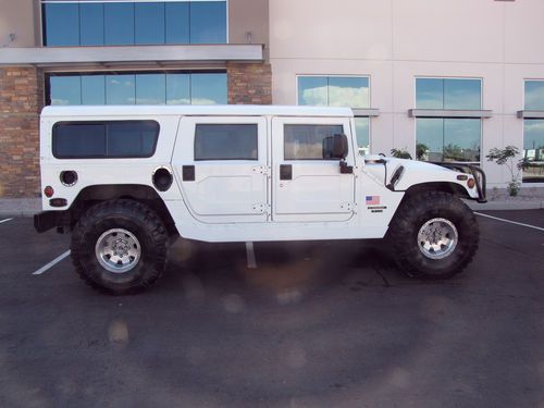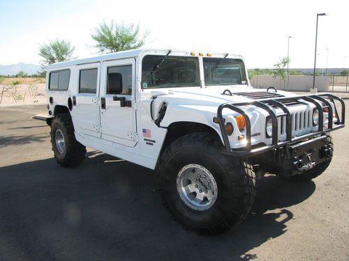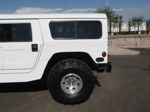 Own the best in this 1997 Hummer H-1 Wagon. Every part of this truck is in excellent condition with all of the options you see listed and more. The vehicle has never been off road and has never been in an accident of any kind. It has been garaged in Arizona since purchased in 2002 and has been driven very little while the owner has been deployed with the Army. The engine was replaced under warranty by GM at 16185 miles and has always had all synthetic fluids in it. New parts include an oil pressure switch, crank position sensor, pump mounted driver (PMD), fuel system driver (FSD) and starter. Truck is running on Michelin 325/85R16 (41 inch) military tires, which are the same tires the Marine Corps uses on its LAV. It comes with a second set of 38x15.5x16.5 Super Swamper tires and factory rims. All records are on hand and will be provided with the vehicle.