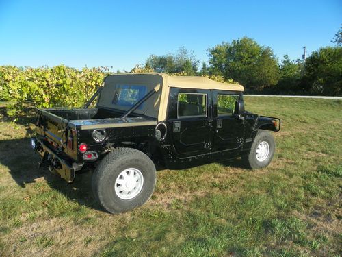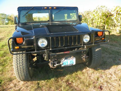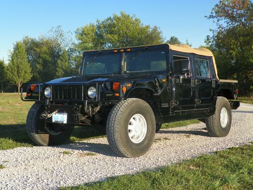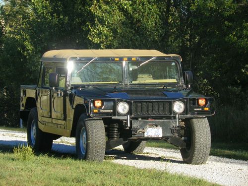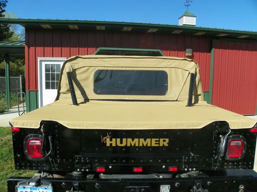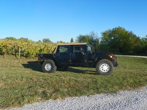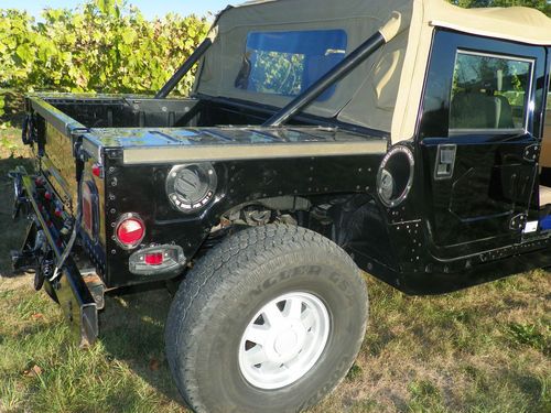 Great Condition 1- Owner , Convertible H-1 Hummer Black Exterior with Tan top and Interior. Many Extras Including: Tow Package, Front Winch system, Brushguard, Runflat Tire System, Driveline Protection, Aluminum Rocker Panel, Heated Windshield, Power windows and many more. Very little off road driving. Over $91,000 New.