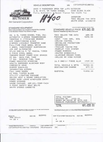 2000 Am General Hummer Base Sport Utility 4-door 6.5l on 2040-cars