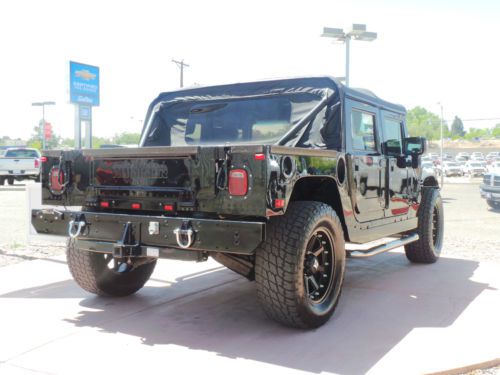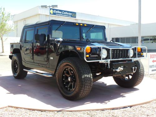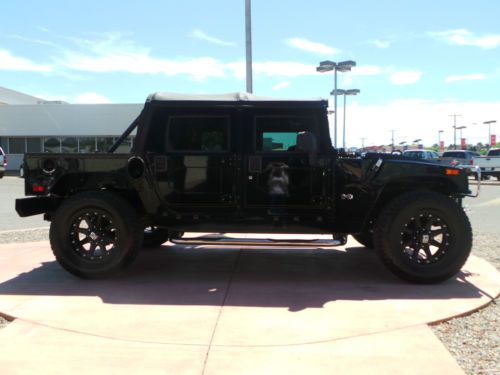 BE THE TALK OF THE TOWN in this 2002 Hummer H1 Open Top 4 door Diesel. This is one BEAUTIFUL Hummer H1. It is black with grey leather. DVD players in both headrest. Removable soft top allows for one "cool" drive through town or off in the sand. Front bumper guard with winch along with a tow package to haul. With so few of these built this is sure to IMPRESS. This 2002 only has 59,895 MILES!!!! Priced to sell and ready to roll. You couldn't ask for a more beautiful, engaging, beast of ride. Sand, snow, mud...these new rims and tires will help complete the task. Exterior Condition: 7/10 Interior Condition: 7/10 Removable Top: 8/10 Tires and Rims: 10/10