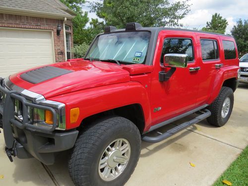 FOR SALE MY 2006 HUMMER H3 IN PRISTINE CONDITION WITH ONLY 28,500 ORIGINAL MILES. I AM A CAR FANATIC AND HAVE REALLY TAKEN CARE OF THIS HUMMER. IT HAS LOADS OF ACCESSARIES INCLUDING 2 SETS OF FLOOR MATS, RUBBER AND PLASTIC, CUSTOM WINDSHIELD SHADE, DASH COVER IN MATCHING BLACK, AND A HUMMER RUBBER CARGO MAT. I WILL ALSO INCLUDE A BRAND NEW HUMMER HAT AND DUFFLE BAG. THE HUMMER HAS NO DINGS, NO SCRATCHES, AND NO DENTS. THE EXTERIOR IS IN MINT CONDITION. INTERIOR LOOKS LIKE NO ONE HAS EVER BEEN IN IT. AND NO ONE BUT ME HAS. NEVER SMOKED IN AND JUST HAD IT CHECKED AT THE HUMMER DEALER. FRESH OIL CHANGE AND TEXAS INSPECTED. IT HAS A $180 DEALER CLEAR COAT SO IT SHINES LIKE NEW. NOW WHY AM I SELLING MY HUMMER. JUST HAD A FAMILY CRISES AND NEED TO RAISE EXTRA CASH SO THE HUMMER AND MOTOR HOME MUST GO. MY LOSS AND THE BYERS GAIN. MY RESERVE IS WELL BELOW THE BOOK VALUE. GOOD LUCK BIDDING AND IF YOU HAVE ANY QUESTIONS YOU MAY CALL RICHARD AT 713 7033776