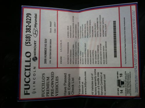 4dr 4wd suv hummer h3 suv automatic gasoline engine, 3.5l dohc, 5-cyl, mfi (220