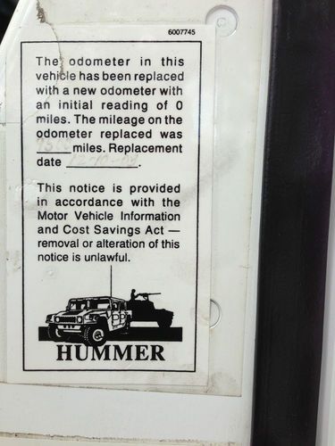 This 2000 H1 Hummer truly is a RARE find! It is absolutly loaded with options such as: 6.5L Diesel Engine, Slant Back, 4X4, HD Wrap Around Brushguard, Central Tire Inflation System, Deluxe Rear View Mirror/Camera, MOMO Steering Wheel, PIAA Brushguard Lights, KC Roof Lights, Winch, Leather Seats, Suade Headliner, Rhino Liner, Power Mirrors, JL Audio Speakers, and JL Audio Amplifier. This is a one owner truck and it has been very well maintained. It shows no signs of offroad abuse and has been titled in Alabama its entire life (so no northern rust!!!) We have full CarFax and AutoCheck reports available upon request showing that this H1 has a clean history with No Accidents. This Hummer also comes with owners manual and maitenance booklet. These H1 Hummers were built to last and this truck will make it through any obsticle you put in front of it. This truck has had the cluster swaped at 9800 miles so the current reading is off by that amount. The proper sticker is in the drivers door frame showing when this repair was done and what the mileage was at time of repair. The actual mileage would be 34,530, that is still incredibly low mileage. Please have financing in order before you bid on this truck. Buyer is responsible for pickup or arrangindg shipment of vehicle. If you have any questions on this truck please give us a call.