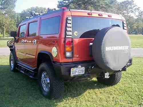 Hello, I am selling my Orange Hummer H2. It is in great condition. Never wrecked. Low highway miles. It has the Chrome package. Chrome rims, handles , gas cap, etc. Has some bubbling on left chrome handle & rims. Fully loaded with Leather, Sun Roof, Grille Guard, 5th Seat, etc. Hope the Pictures help show the truck. I selling because have my first senior heading for college next year. need the cash. Priced under K.B.B. Private seller value. Feel free to email any questions.