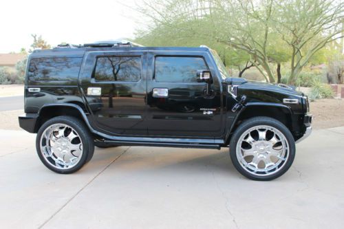 2006 HUMMER H2 SUPERCHARGED. ONLY 42K MILES. OVER $75k SPENT IN AFTERMARKET ACCESSORIES. INCLUDING MAGNA SUPERCHARGER, VOLANT AIR INTAKE, CUSTOM INTERIOR, NAVIGATION, DVD, 4 SCREENS, CUSTOM STEREO SYSTEM WITH SUBWOOFER, CARBON FIBER INTERIOR TRIM, CUSTOM DASH, CHROME EVERYTHING., SATELLITE DISH FOR DIRECT TV, 28 INCH GIOVANNI RIMS WITH PIRELLI TIRES, WAY TOO MUCH TO LIST. ALL WORK PERFORMED AT LEGENDS CADILLAC IN SCOTTSDALE ARIZONA. OVER $150K INVESTED IN THIS HUMMER. |