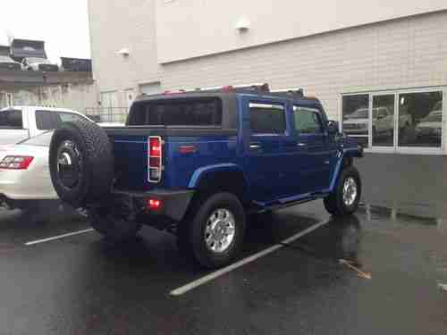 WOW...you're looking at a rare find here. A fully loaded 2006 Hummer H2 SUT model. This is a Limited Edition model in Pacific Blue, one of only 500 built in this color. Has Luxury package, with leather heated seats, full power, Power moonroof, light bar/roof rack on top, NAVIGATION, Dual DVD's in the headrests with headsets & remote, Chrome Package, Chrome wheels, Air suspension, Tonneau cover, sliding down rear window, tow package, extra chrome added, and lots more. Very clean, low miles, and very nice. Just a couple small dings/chips, but overall in great shape. Tires lots of treads, brakes almost new, brand new battery, and fully safety inspected. Sold as-is due to age. This DOES SHOW an accident on history report, but WE HAVE POLICE REPORT showing "NO DAMAGE" to H2...it was hit in wheel, and only needed a new plastic center cap! That's HUMMER TOUGH! We provide history reports, and have the police record to show. 2 sets of keys, owner's manual, Navigation disk. It's all here. Don't pass by this rare find, fully loaded, at one of the BEST prices around. Call Internet Manager Dan Ciriello @ 860-793-4688 with ?'s or to buy!