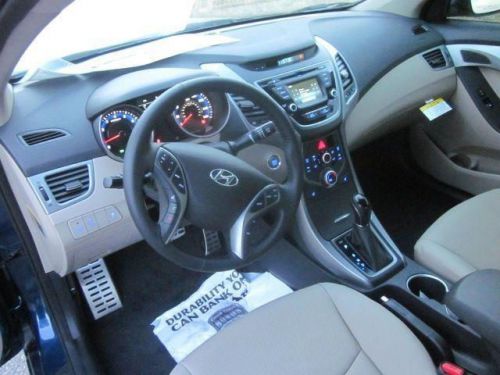 This 2014 Hyundai Elantra 4dr 4dr Sdn Auto Sport Sedan features a 2.0L DOHC 16V 4CYLINDER C 4cyl Gasoline engine. It is equipped with a 6 Speed Automatic transmission. The vehicle is Windy Sea Blue with a Beige interior. It is offered with a full factory warranty. - Air Conditioning, Cruise Control, Tinted Windows, Power Door Locks, Tachometer, Digital Info Center, Tilt Steering Wheel, Steering Wheel Radio Controls, Sunroof, Side Airbags, Keyless Entry, Security System, ABS Brakes, Traction Control, Dynamic Stability, Rear Defogger, Fog Lights, Intermittent Wipers, Alloy Wheels, Sport Package, Lock-Up Torque Converter, Gate Type And Electronic Shift Lock System, 2.0L DOHC 16V 4Cylinder CVVT GDI -inc: hood insulator and chrome exhaust outlet, Front-Wheel Drive, Heated Front Bucket Seats -inc: power driver seat with lumbar support, 4-Way Passenger Seat -inc: Manual Recline and Fore/Aft Movement, Power Rear Windows, Leather/Metal-Look Steering Wheel, Front Cupholder, Rear Cupholder, Remote Releases -Inc: Mechanical Trunk/Hatch and Mechanical Fuel, HVAC -inc: Underseat Ducts, Glove Box, Driver Foot Rest, Full Cloth Headliner, Leatherette Door Trim Insert, Leather/Piano Black Gear Shift Knob, Interior Trim -inc: Metal-Look Instrument Panel Insert, Day-Night Rearview Mirror, Driver And Passenger Visor Vanity Mirrors with Driver And Passenger Illumination, Full Floor Console with Covered Storage, Front Map Lights, Fade-To-Off Interior Lighting, Full Carpet Floor Covering, Carpet Floor Trim and Carpet Trunk Lid/Rear Cargo Door Trim, Cargo Features -inc: Spare Tire Tire Inflator, Cargo Space Lights, FOB Controls -inc: Trunk/Hatch/Tailgate, Instrument Panel Covered Bin, Delayed Accessory Power, Power 1st Row Windows with Driver 1-Touch Up/Down, Outside Temp Gauge, Digital/Analog Display, Manual Adjustable Front Head Restraints and Manual Adjustable Rear Head Restraints, Sliding Front Center Armrest and Rear Center Armrest, Engine Immobilizer, 2 12V DC Power Outlets, ... HYUNDAI HAS THE MOST MODERN, ATTRACTIVE, UPDATED LINE-UP FOR 2012. GET MORE CAR FOR YOUR HARD-EARNED DOLLAR FROM HENDRICK HYUNDAI'S INTERNET SALES TEAM!