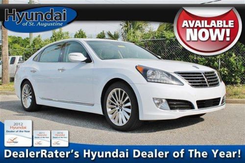 Signature Edition. Experience Premium Luxury and find out why the Equus won JD Powers 2011 Appeal award for the large premium car segment. Includes 3 years/36,000 miles of no charge maintenance. Covered by the Hyundai Assurance Plan, including a 10 year/100,000 mile limited powertrain warranty, 5 years/60,000 miles comprehensive warranty, and 5 years/unlimited mileage roadside assistance. Visit Dealerrater.com to see what customers are saying and why Hyundai of St. Augustine is the #1 Hyundai dealer in the country. Selling price includes applicable factory rebate. Selling price is plus applicable tax, tag/registration, and dealer fee of 599.50. Announcing upfront pricing from Hyundai of St. Augustine. We want to save you time and money by providing you with an upfront, competitive price on all new Hyundai's. Find out why Hyundai of St. Augustine is the 2010/2011/2012 Hyundai Dealer of the Year on Dealerrater.com