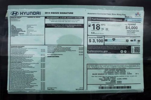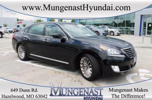 Back in Black! Won't last long! Stop clicking the mouse because this 2014 Hyundai Equus is the car you've been searching for. The quality of this superb Equus is sure to make it a favorite among our educated buyers. Experience the Mungenast Difference! Visit us at mungenasthyundai.com. Mungenast Hyundai in Hazelwood just off of North Lindbergh and I-270 at 649 Dunn Rd, Hazelwood, MO 63042 888-212-1161 St Louis's Low-Priced Volume Hyundai Dealer! Remember, Hyundai makes the car, Mungenast makes the difference!Prices do not include additional fees and costs of closing, including government fees and taxes, any finance charges, any dealer fees, any emissions testing fees or other fees. All prices, specifications and availability subject to change without notice. Contact dealer for most current information. Advertised price includes all available factory and dealership rebates and discounts. See Mungenast Hyundai for complete details. This offer includes all rebates and dealer cash back to the dealer. Includes the $2000 HMF Bonus cash so this offer in not available with 0% financing. Includes Valued Owner Rebate of $500 and Military Rebate of $500. See a Mungenast Sales Associate for complete details and requirements for rebates. All Dealer Installed Accessories are extra. Come Experience the Mungenast Difference at Mungenast Hyundai. St Louis' Low Price Volume Hyundai Dealership. View the new prices at MungenastHyundai.com At 270 and N. Lindberg on Dunn Rd in Hazelwood, MO. Remember Hyundai Makes the Car, Mungenast Makes the Difference! 888-212-1161