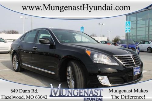 5.0L V8 DGI DOHC 32V Dual CVVT, Caspian Black, and Jet Blk Ultra Prem Lth. Navigation! Perfect Color Combination! This 2014 Equus is for Hyundai enthusiasts looking high and low for the perfect do-it-all car. It's ready and equipped to take on whatever the day and your family offers up - which is usually plenty. Experience the Mungenast Difference! Visit us at mungenasthyundai.com. Mungenast Hyundai in Hazelwood just off of North Lindbergh and I-270 at 649 Dunn Rd, Hazelwood, MO 63042 888-212-1161 St Louis's Low-Priced Volume Hyundai Dealer! Remember, Hyundai makes the car, Mungenast makes the difference!Prices do not include additional fees and costs of closing, including government fees and taxes, any finance charges, any dealer fees, any emissions testing fees or other fees. All prices, specifications and availability subject to change without notice. Contact dealer for most current information. Advertised price includes all available factory and dealership rebates and discounts. See Mungenast Hyundai for complete details. This offer includes all rebates and dealer cash back to the dealer. Includes the $2000 HMF Bonus cash so this offer in not available with 0% financing. Includes Valued Owner Rebate of $500 and Military Rebate of $500. See a Mungenast Sales Associate for complete details and requirements for rebates. All Dealer Installed Accessories are extra. Come Experience the Mungenast Difference at Mungenast Hyundai. St Louis' Low Price Volume Hyundai Dealership. View the new prices at MungenastHyundai.com At 270 and N. Lindberg on Dunn Rd in Hazelwood, MO. Remember Hyundai Makes the Car, Mungenast Makes the Difference! 888-212-1161