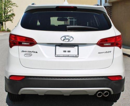 Turbo Santa Fe Sport with Navigation Package, floor mats, cargo tray, cargo cover, and mud guards.Includes Hyundai Connected Care, which gives you 3 years free of safety and car care features of Hyundai BlueLink. Every new Hyundai from Hyundai of St. Augustine includes your first two oil changes free! Posted Internet price includes $750 Hyundai Motor Finance Bonus Cash for financing with Hyundai Motor Finance with approved credit. Find out why Santa Fe Sport was Autbytel's 2013 Crossover Utility Vehicle of the year, an IIHS Top Safety Pick, and ALG's top residual value award for the segment in 2013. Posted Internet price includes dealer discount ! Covered by the Hyundai Assurance Plan, including a 10 year/100,000 mile limited powertrain warranty, 5 years/60,000 miles comprehensive warranty, and 5 years/unlimited mileage roadside assistance. Visit Dealerrater.com to see what customers are saying and why Hyundai of St. Augustine is the #1 Hyundai dealer in the country. Selling price includes applicable factory rebate. Selling price is plus applicable tax, tag/registration, and dealer fee of 599.50 Announcing upfront pricing from Hyundai of St. Augustine. We want to save you time and money by providing you with an upfront, competitive price on all new Hyundai's. Find out why Hyundai of St. Augustine is the 2010/2011/2012 Hyundai Dealer of the Year on Dealerrater.com