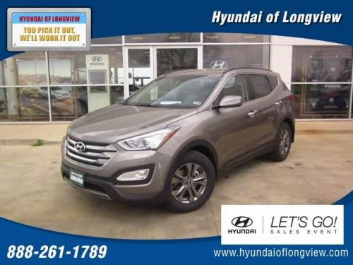 2014 Hyundai Santa Fe Sport FWD 4dr 2.4 Hyundai of Longview presents this 2014 Hyundai SANTA FE SPORT FWD 4dr 2.4. Represented in SILVER. Under the hood you will find the 2.4L I4 16V GDI DOHC coupled with the AUTOMATIC. Warranty Information: Purchase this Hyundai with confidence knowing it is backed with a 60 month / 60000 mile warranty. Options and Safety Features: Nicely equipped with ABS And Driveline Traction Control Airbag Occupancy Sensor Blue Link Emergency S.O.S Curtain 1st And 2nd Row Airbags Driver Knee Airbag Dual Stage Driver And Passenger Front Airbags Dual Stage Driver And Passenger Seat-Mounted Side Airbags Electronic Stability Control (ESC) Low Tire Pressure Warning Outboard Front Lap And Shoulder Safety Belts -inc: Rear Center 3 Point Height Adjusters and Pretensioners Rear Child Safety Locks Side Impact Beams. Awards And Accolades: ALG Residual Value Awards Hyundai of Longview WE WILL BEAT ANY DEAL! At Hyundai of Longview our goal is to provide you with an excellent vehicle purchase and ownership experience. For the finest in personal customer service please contact the Internet Department directly through this website. Also please note we take great care to keep our listings up to date however our inventory changes daily and not all inventory is online. If you do not see what you are looking for then please call. We look forward to providing you with excellent customer service and welcoming you as a Hyundai of Longview client. You can reach us at 888-464-9302 or by visiting us online at www.hyundaioflongview.com. Please call for more information. Please call us for more information. "You pick it out and We'll work it out!"