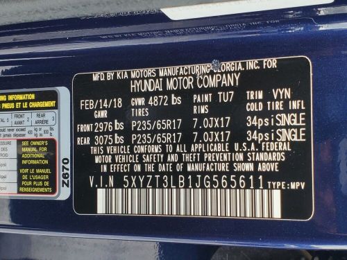 VIN (Vehicle Identification Number): 5XYZT3LB1JG565611