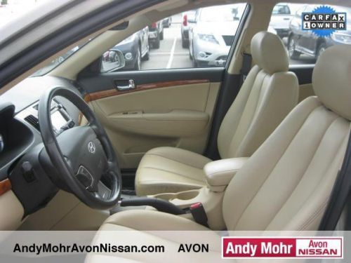 LOOK AT THIS ONE! THIS IS NOT A BASE SONATA! IN FACT, IT IS THE COMPLETE OPPOSITE! THIS SONATA IS ABSOLUTELY LOADED AND IS A TRUE CREAMPUFF! SONATA 3.3L V6 IN NATURAL KHAKI MICA! CLEAN CARFAX! ONE OWNER! LEATHER! HEATED SEATS! NAVIGATION! POWER SUNROOF! THIS SONATA HAS IT ALL! HURRY IN! $ $ $ $ $ I knew that would get your attention! Now that I have it, let me tell you a little bit about this terrific 2010 Hyundai Sonata that is in just great condition. J.D. Power and Associates gave the 2010 Sonata 4.5 out of 5 Power Circles for Overall Initial Quality Design. Clean doesn't even begin to describe the great condition of this car. You just need to see it for yourself. You will get MOHR for your money at Andy Mohr Avon Nissan! We have one of the largest pre-owned inventories in the state. Our pre-owned vehicles are hand-picked by the best in the business, have receive a comprehensive inspection and are ready for delivery today. Andy Mohr sets the standard for price, selection and service! Visit our new, state-of-the-art dealership today and see for yourself. We carry all makes and models such as Nissan,GMC,Buick,Chevy.