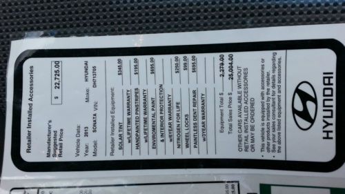 2013 Hyundai Sonata GLS 2.4L engine with 13465 miles only (miles will go up since it is my wife's daily driver). This vehicle is super clean, great gas mileage , drives excellent !!! No problems at ALL !!! This vehicle is still financed thru Chrysler Capital but since I work at the dealership I can provide with any bank finance. If you have any questions or concerns please do not hesitate to contact me. Happy Bidding !!! |