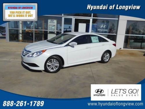 2014 Hyundai Sonata 4dr Sdn 2.4L Auto GLS Hyundai of Longview presents this 2014 Hyundai SONATA 4dr Sdn 2.4L Auto GLS. Represented in WHITE and complimented nicely by its BEIGE interior. Under the hood you will find the 4-Cyl 2.4 Liter coupled with the AUTO 6-SPD SHFTRNC. Warranty Information: Purchase this Hyundai with confidence knowing it is backed with a 60 month / 60000 mile warranty. Options and Safety Features: Nicely equipped with ABS And Driveline Traction Control, Airbag Occupancy Sensor, Blue Link Emergency S.O.S, Curtain 1st And 2nd Row Airbags, Dual Stage Driver And Passenger Front Airbags, Dual Stage Driver And Passenger Seat-Mounted Side Airbags, Electronic Stability Control (ESC), Outboard Front Lap And Shoulder Safety Belts -inc: Rear Center 3 Point, Height Adjusters and Pretensioners, Rear Child Safety Locks, Side Impact Beams, Tire Specific Low Tire Pressure Warning and ABS (4-WHEEL), AIR CONDITIONING, ALLOY WHEELS, AM/FM STEREO, BLUE LINK TELEMATICS, BLUETOOTH WIRELESS, CRUISE CONTROL, DAYTIME RUNNING LIGHTS, DUAL AIR BAGS, ELECTRONIC STABILITY CONTROL, HEAD CURTAIN AIR BAGS, KEYLESS ENTRY, MP3 (SINGLE DISC), POWER DOOR LOCKS, POWER STEERING, POWER WINDOWS, SIDE AIR BAGS, SIRIUSXM SATELLITE, TILT & TELESCOPING WHEEL, TRACTION CONTROL. Hyundai of Longview WE WILL BEAT ANY DEAL! At Hyundai of Longview our goal is to provide you with an excellent vehicle purchase and ownership experience. For the finest in personal customer service, please contact the Internet Department directly through this website. Also, please note, we take great care to keep our listings up to date, however our inventory changes daily and not all inventory is online. If you do not see what you are looking for, then please call. We look forward to providing you with excellent customer service and welcoming you as a Hyundai of Longview client. You can reach us at 888-464-9302 or by visiting us online at www.hyundaioflongview.com. Please call us for more information. "You pick it out and We'll work it out!"