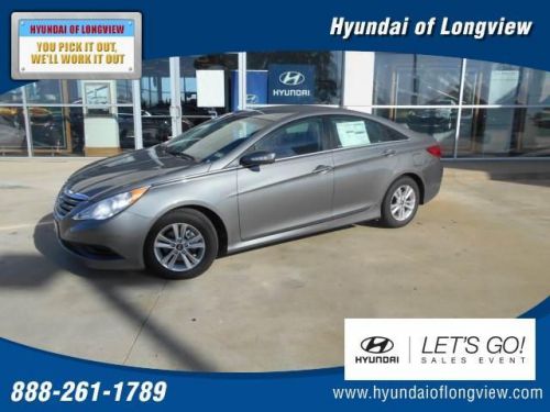 2014 Hyundai Sonata 4dr Sdn 2.4L Auto GLS Hyundai of Longview presents this 2014 Hyundai SONATA 4dr Sdn 2.4L Auto GLS. Represented in GRAY and complimented nicely by its GRAY interior. Under the hood you will find the 4-Cyl 2.4 Liter coupled with the AUTO 6-SPD SHFTRNC. Warranty Information: Purchase this Hyundai with confidence knowing it is backed with a 60 month / 60000 mile warranty. Options and Safety Features: Nicely equipped with ABS And Driveline Traction Control, Airbag Occupancy Sensor, Blue Link Emergency S.O.S, Curtain 1st And 2nd Row Airbags, Dual Stage Driver And Passenger Front Airbags, Dual Stage Driver And Passenger Seat-Mounted Side Airbags, Electronic Stability Control (ESC), Outboard Front Lap And Shoulder Safety Belts -inc: Rear Center 3 Point, Height Adjusters and Pretensioners, Rear Child Safety Locks, Side Impact Beams, Tire Specific Low Tire Pressure Warning. Hyundai of Longview WE WILL BEAT ANY DEAL! At Hyundai of Longview our goal is to provide you with an excellent vehicle purchase and ownership experience. For the finest in personal customer service, please contact the Internet Department directly through this website. Also, please note, we take great care to keep our listings up to date, however our inventory changes daily and not all inventory is online. If you do not see what you are looking for, then please call. We look forward to providing you with excellent customer service and welcoming you as a Hyundai of Longview client. You can reach us at 888-464-9302 or by visiting us online at www.hyundaioflongview.com. Please call us for more information. "You pick it out and We'll work it out!"