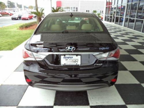 This 2014 Hyundai Sonata Hybrid 4dr 4dr Sdn Limited Sedan features a 2.4L ATKINSON CYCLE 4-CYL 4cyl Hybrid engine. It is equipped with a 6 Speed Automatic transmission. The vehicle is Black Onyx Pearl with a Camel Leather interior. It is offered with a full factory warranty. - Air Conditioning, Cruise Control, Tinted Windows, Power Door Locks, Leather Shifter, Power Drivers Seat, Digital Info Center, Homelink System, Tilt Steering Wheel, Steering Wheel Radio Controls, Side Airbags, Keyless Entry, Security System, ABS Brakes, Traction Control, Dynamic Stability, Rear Defogger, Fog Lights, Intermittent Wipers, Alloy Wheels, Leather Interior Surface, 2.4L Atkinson Cycle 4-Cylinder Hybrid, Front-Wheel Drive, Heated Front Bucket Seats -inc: multi-adjustable bucket, Power Rear Windows, Selective Service Internet Access, Front Cupholder, Rear Cupholder, Compass, Proximity Key For Doors And Ignition, Valet Function, Remote Releases -Inc: Power Trunk/Hatch and Power Fuel, HVAC -inc: Underseat Ducts, Illuminated Locking Glove Box, Driver Foot Rest, Interior Trim -inc: Metal-Look Instrument Panel Insert, Full Cloth Headliner, Leatherette Door Trim Insert, Leather/Piano Black Gear Shift Knob, Driver And Passenger Visor Vanity Mirrors with Driver And Passenger Illumination, Day-Night Auto-Dimming Rearview Mirror, Full Floor Console with Covered Storage, Front Map Lights, Fade-To-Off Interior Lighting, Full Carpet Floor Covering, Carpet Floor Trim and Carpet Trunk Lid/Rear Cargo Door Trim, Cargo Features -inc: Spare Tire Tire Inflator, Cargo Space Lights, FOB Controls -inc: Trunk/Hatch/Tailgate, Tracker System, Instrument Panel Covered Bin, Power 1st Row Windows with Driver 1-Touch Up/Down, Delayed Accessory Power, Systems Monitor, Outside Temp Gauge, Digital/Analog Display, Manual Type Adjustable Front Head Restraints and Manual Adjustable Rear Head Restraints, Front Center Armrest with Storage and Rear Center Armrest with Pass-Thru, Engine Immobilizer, 2 12V DC Power O ... HYUNDAI HAS THE MOST MODERN, ATTRACTIVE, UPDATED LINE-UP FOR 2012. GET MORE CAR FOR YOUR HARD-EARNED DOLLAR FROM HENDRICK HYUNDAI'S INTERNET SALES TEAM!