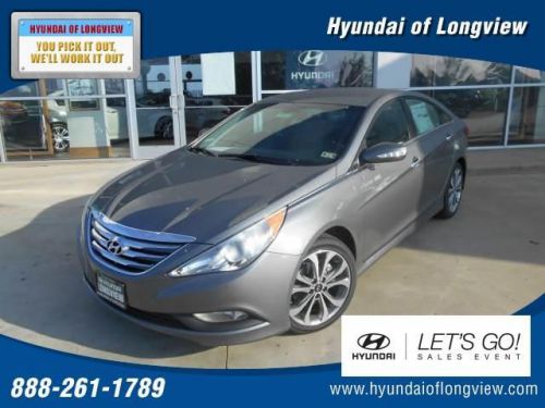 2014 Hyundai SONATA Hyundai of Longview presents this 2014 Hyundai SONATA 4dr Sdn 2.4L Auto SE. Represented in GRAY and complimented nicely by its GRAY interior. Under the hood you will find the 2.4L I4 16V GDI DOHC coupled with the ENTER MY OWN.... Warranty Information: Purchase this Hyundai with confidence knowing it is backed with a 60 month / 60000 mile warranty. Options and Safety Features: Nicely equipped with ABS And Driveline Traction Control, Airbag Occupancy Sensor, Blue Link Emergency S.O.S, Curtain 1st And 2nd Row Airbags, Dual Stage Driver And Passenger Front Airbags, Dual Stage Driver And Passenger Seat-Mounted Side Airbags, Electronic Stability Control (ESC), Outboard Front Lap And Shoulder Safety Belts -inc: Rear Center 3 Point, Height Adjusters and Pretensioners, Rear Camera, Rear Child Safety Locks, Side Impact Beams, Tire Specific Low Tire Pressure Warning. Hyundai of Longview WE WILL BEAT ANY DEAL! At Hyundai of Longview our goal is to provide you with an excellent vehicle purchase and ownership experience. For the finest in personal customer service, please contact the Internet Department directly through this website. Also, please note, we take great care to keep our listings up to date, however our inventory changes daily and not all inventory is online. If you do not see what you are looking for, then please call. We look forward to providing you with excellent customer service and welcoming you as a Hyundai of Longview client. You can reach us at 888-464-9302 or by visiting us online at www.hyundaioflongview.com. Please call us for more information. "You pick it out and We'll work it out!"