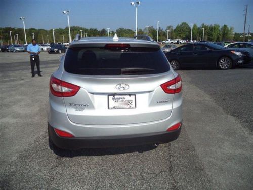 This 2014 Hyundai Tucson 4dr FWD 4dr Limited SUV features a 2.4L THETA II DOHC 16V I4 4cyl Gasoline engine. It is equipped with a 6 Speed Automatic transmission. The vehicle is Diamond Silver with a Black interior. It is offered with a full factory warranty. - Air Conditioning, Cruise Control, Tinted Windows, Power Door Locks, Roof Rack, Tachometer, Digital Info Center, Homelink System, Tilt Steering Wheel, Steering Wheel Radio Controls, Side Airbags, Keyless Entry, Security System, ABS Brakes, Traction Control, Dynamic Stability, Rear Defogger, Fog Lights, Alloy Wheels, Gate Type, Electronic Shift Lock System And Manual Shift Mode, 2.4L Theta II DOHC 16V I4 with CVVT MPI, Front-Wheel Drive, Heated Front Bucket Seats -inc: high/low heat settings, 4-Way Passenger Seat -inc: Manual Recline and Fore/Aft Movement, Power Rear Windows and Fixed 3rd Row Windows, Selective Service Internet Access, Leather/Metal-Look Steering Wheel, Front Cupholder, Rear Cupholder, Remote Releases -Inc: Mechanical Fuel, Valet Function, HVAC -inc: Underseat Ducts and Console Ducts, Illuminated Locking Glove Box, Driver Foot Rest, Interior Trim -inc: Metal-Look Interior Accents, Full Cloth Headliner, Leatherette Door Trim Insert, Leather Gear Shift Knob, Driver And Passenger Visor Vanity Mirrors with Driver And Passenger Illumination, Day-Night Auto-Dimming Rearview Mirror, Full Floor Console with Covered Storage, Front Map Lights, Fade-To-Off Interior Lighting, Full Carpet Floor Covering, Carpet Floor Trim, Cargo Area Concealed Storage, Roll-Up Cargo Cover, Cargo Space Lights, Tracker System, Driver / Passenger And Rear Door Bins, Power 1st Row Windows with Driver 1-Touch Up/Down, Delayed Accessory Power, Digital/Analog Display, Outside Temp Gauge, Manual Adjustable Rear Head Restraints, Front Center Armrest and Rear Center Armrest, Engine Immobilizer, 3 12V DC Power Outlets, Air Filtration, black, Compact Spare Tire Mounted Inside Under Cargo, Clearcoat Paint, Body-Colored Front Bum ... HYUNDAI HAS THE MOST MODERN, ATTRACTIVE, UPDATED LINE-UP FOR 2012. GET MORE CAR FOR YOUR HARD-EARNED DOLLAR FROM HENDRICK HYUNDAI'S INTERNET SALES TEAM!