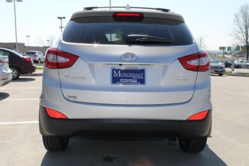 Tucson Limited, 4D Sport Utility, 2.4L, 6-Speed Automatic with Overdrive, FWD, Diamond Silver, and Blk Leather. Switch to Dave Mungenast Hyundai! How economical is this! Just in, this great-looking 2014 Hyundai Tucson comes with a 2.4L engine and 6-Speed Automatic with Overdrive. This Tucson is an amazingly fuel efficient Hyundai. No longer will you break the bank when you pull up to the gas pump. Experience the Mungenast Difference! Visit us at mungenasthyundai.com. Mungenast Hyundai in Hazelwood just off of North Lindbergh and I-270 at 649 Dunn Rd, Hazelwood, MO 63042 888-212-1161 St Louis's Low-Priced Volume Hyundai Dealer! Remember, Hyundai makes the car, Mungenast makes the difference!Prices do not include additional fees and costs of closing, including government fees and taxes, any finance charges, any dealer fees, any emissions testing fees or other fees. All prices, specifications and availability subject to change without notice. Contact dealer for most current information. Advertised price includes all available factory and dealership rebates and discounts. See Mungenast Hyundai for complete details. This offer includes all rebates and dealer cash back to the dealer. Includes the $2000 HMF Bonus cash so this offer in not available with 0% financing. Includes Valued Owner Rebate of $500 and Military Rebate of $500. See a Mungenast Sales Associate for complete details and requirements for rebates. All Dealer Installed Accessories are extra. Come Experience the Mungenast Difference at Mungenast Hyundai. St Louis' Low Price Volume Hyundai Dealership. View the new prices at MungenastHyundai.com At 270 and N. Lindberg on Dunn Rd in Hazelwood, MO. Remember Hyundai Makes the Car, Mungenast Makes the Difference! 888-212-1161