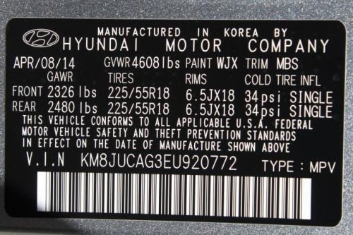 VIN (Vehicle Identification Number): KM8JUCAG3EU920772