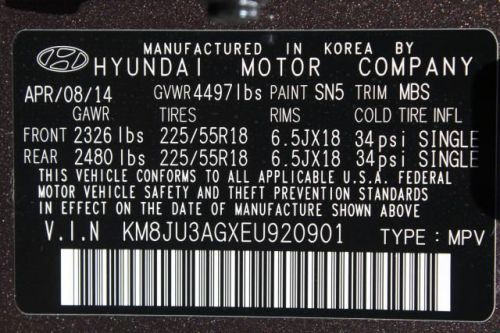 VIN (Vehicle Identification Number): KM8JU3AGXEU920901