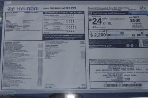Tucson Limited, 2.4L, Kona Bronze, and Taupe Leather Seat Trim. Oh yeah! Yeah baby! How do you beat the price at the pump? Just try this this fuel-efficient 2014 Hyundai Tucson on for size, that's how. This SUV will solve your fuel mileage woes! Experience the Mungenast Difference! Visit us at mungenasthyundai.com. Mungenast Hyundai in Hazelwood just off of North Lindbergh and I-270 at 649 Dunn Rd, Hazelwood, MO 63042 888-212-1161 St Louis's Low-Priced Volume Hyundai Dealer! Remember, Hyundai makes the car, Mungenast makes the difference!Prices do not include additional fees and costs of closing, including government fees and taxes, any finance charges, any dealer fees, any emissions testing fees or other fees. All prices, specifications and availability subject to change without notice. Contact dealer for most current information. Advertised price includes all available factory and dealership rebates and discounts. See Mungenast Hyundai for complete details. This offer includes all rebates and dealer cash back to the dealer. Includes the $2000 HMF Bonus cash so this offer in not available with 0% financing. Includes Valued Owner Rebate of $500 and Military Rebate of $500. See a Mungenast Sales Associate for complete details and requirements for rebates. All Dealer Installed Accessories are extra. Come Experience the Mungenast Difference at Mungenast Hyundai. St Louis' Low Price Volume Hyundai Dealership. View the new prices at MungenastHyundai.com At 270 and N. Lindberg on Dunn Rd in Hazelwood, MO. Remember Hyundai Makes the Car, Mungenast Makes the Difference! 888-212-1161